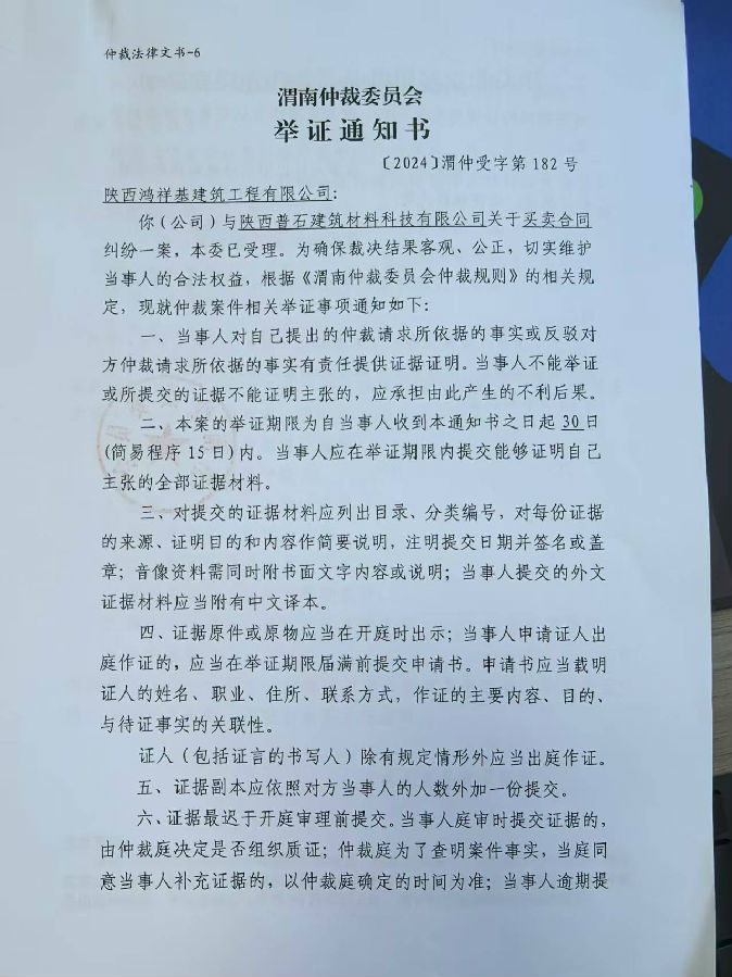 陜西普石建筑材料科技有限公司與陜西鴻祥基建筑工程有限公司買賣合同糾紛案公告